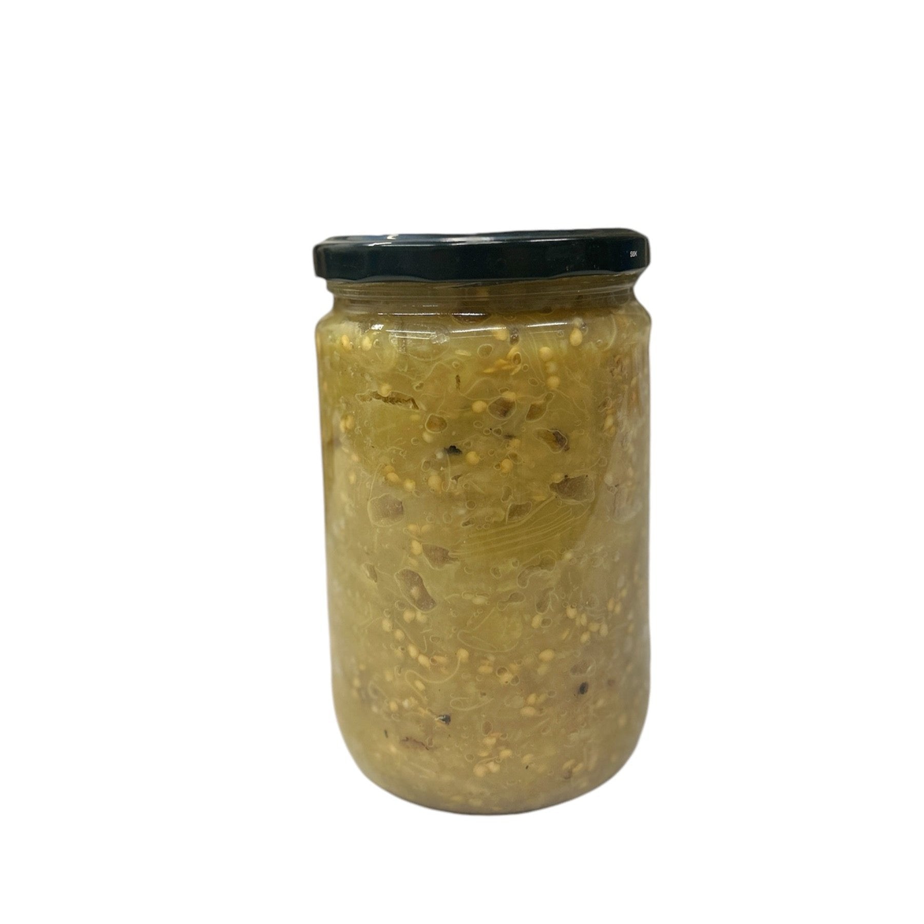 Diese natürliche Delikatesse wird aus sorgfältig gerösteten frischen Auberginen hergestellt und verleiht Ihren Gerichten ein unverwechselbares Aroma und einen reichen Geschmack. Die weiche Textur und das intensive Aroma der gerösteten Auberginen passen perfekt zu Salaten, Vorspeisen und vielen Rezepten. Unsere gerösteten Auberginen sind zu 100 % natürlich und ohne Zusatzstoffe, angeboten in einem 750-Gramm-Glas. Bereichern Sie Ihre Mahlzeiten mit dieser gesunden und köstlichen Wahl.