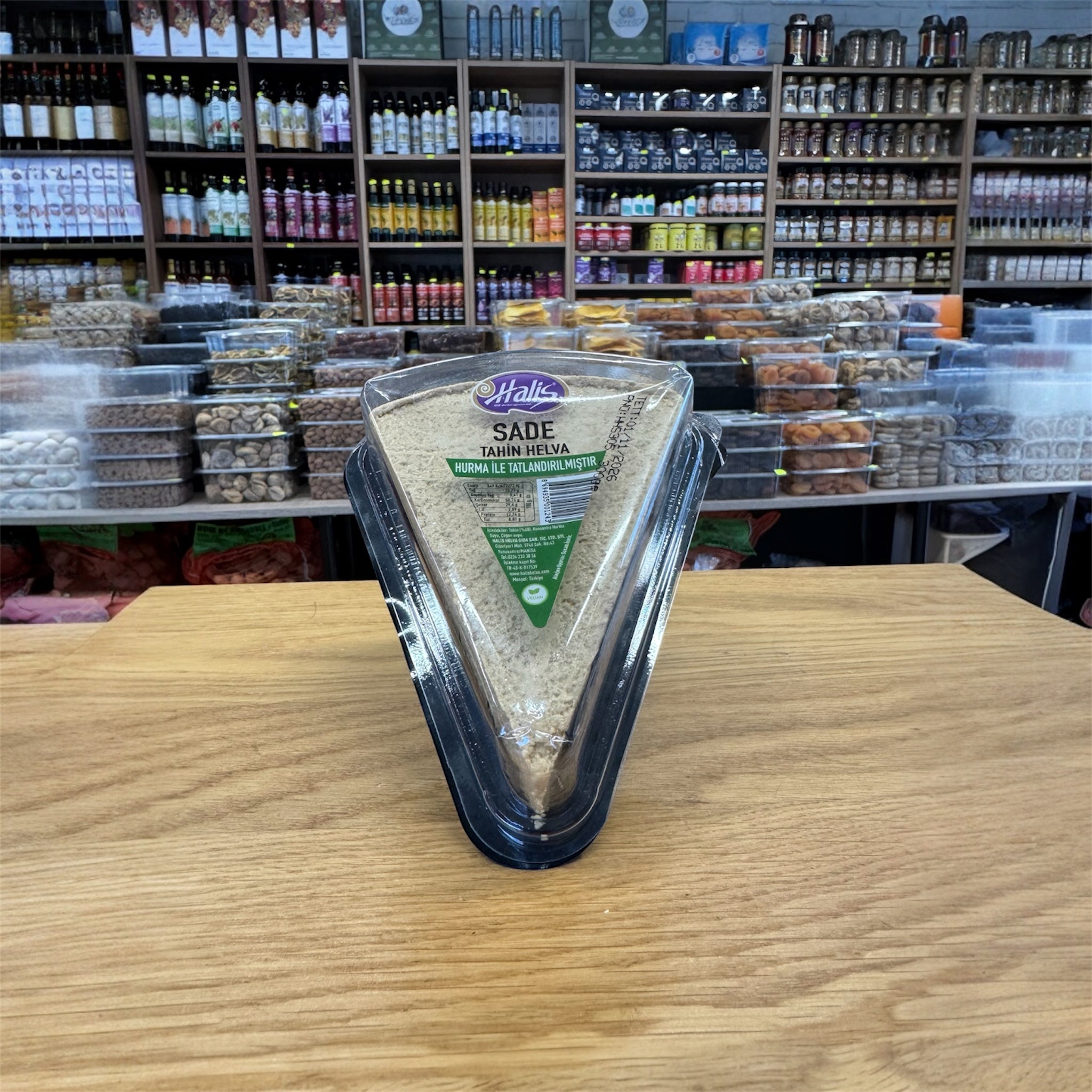 Die mit Dattelsaft gesüßte natürliche Tahinhelva von Halis Helva ist eine vegane, raffinierter Zuckerfreie und traditionelle Alternative für alle, die auf natürliche Süße und Qualität Wert legen. Mit einem Anteil von 63 % Tahin wird sie aus Çögen-Wasser, konzentriertem Dattelsaft und Vanillin hergestellt – alles sorgfältig ausgewählte Zutaten, die dieser Helva ihren einzigartigen Geschmack und ihre besondere Konsistenz verleihen.