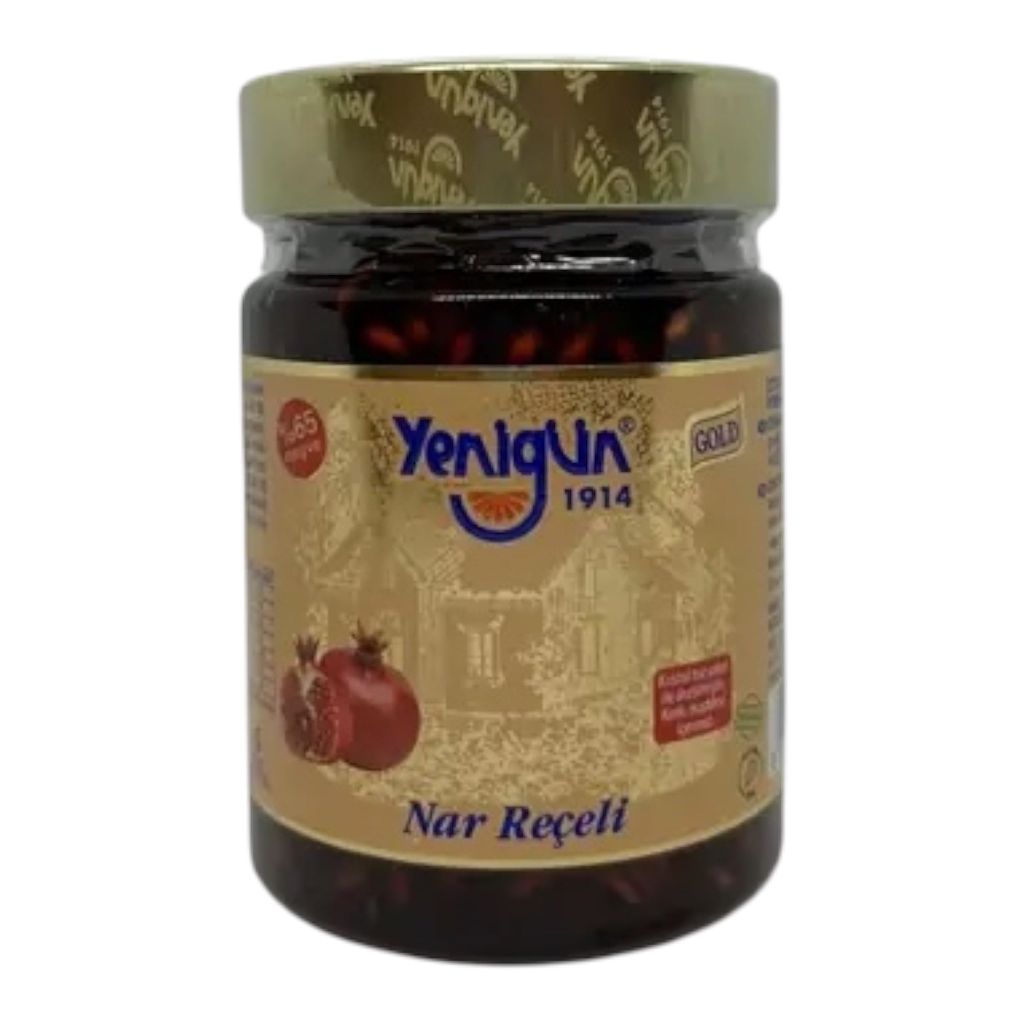 Die Yenigün Gold Serie Granatapfelmarmelade wird nach traditioneller Hausrezeptur hergestellt und enthält 65 % Fruchtanteil. Ohne Glukose und ohne Zusatzstoffe bietet sie einen natürlichen, leicht säuerlich-fruchtigen Geschmack – wie hausgemacht.