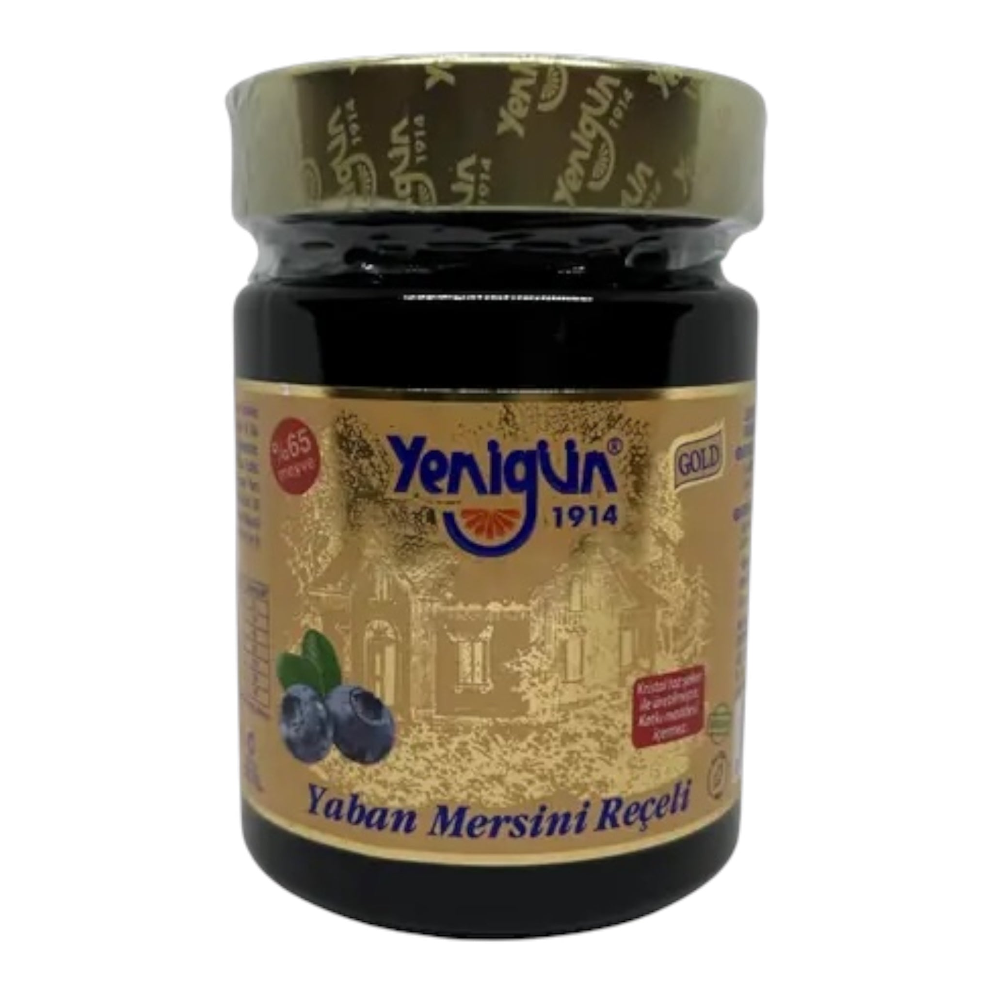 Die Yenigün Gold Serie Heidelbeermarmelade wird nach traditioneller Hausrezeptur hergestellt und enthält 65 % Fruchtanteil. Ohne Glukose und ohne Zusatzstoffe bietet sie einen natürlichen, intensiven Geschmack – wie hausgemacht.