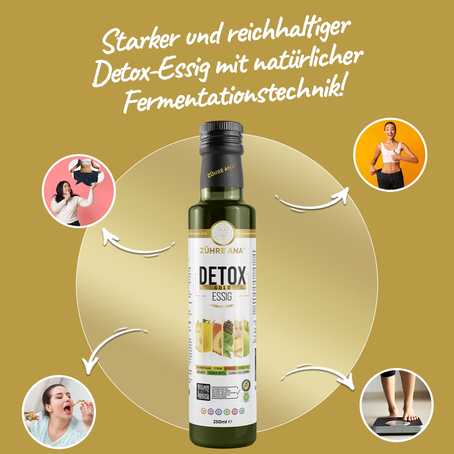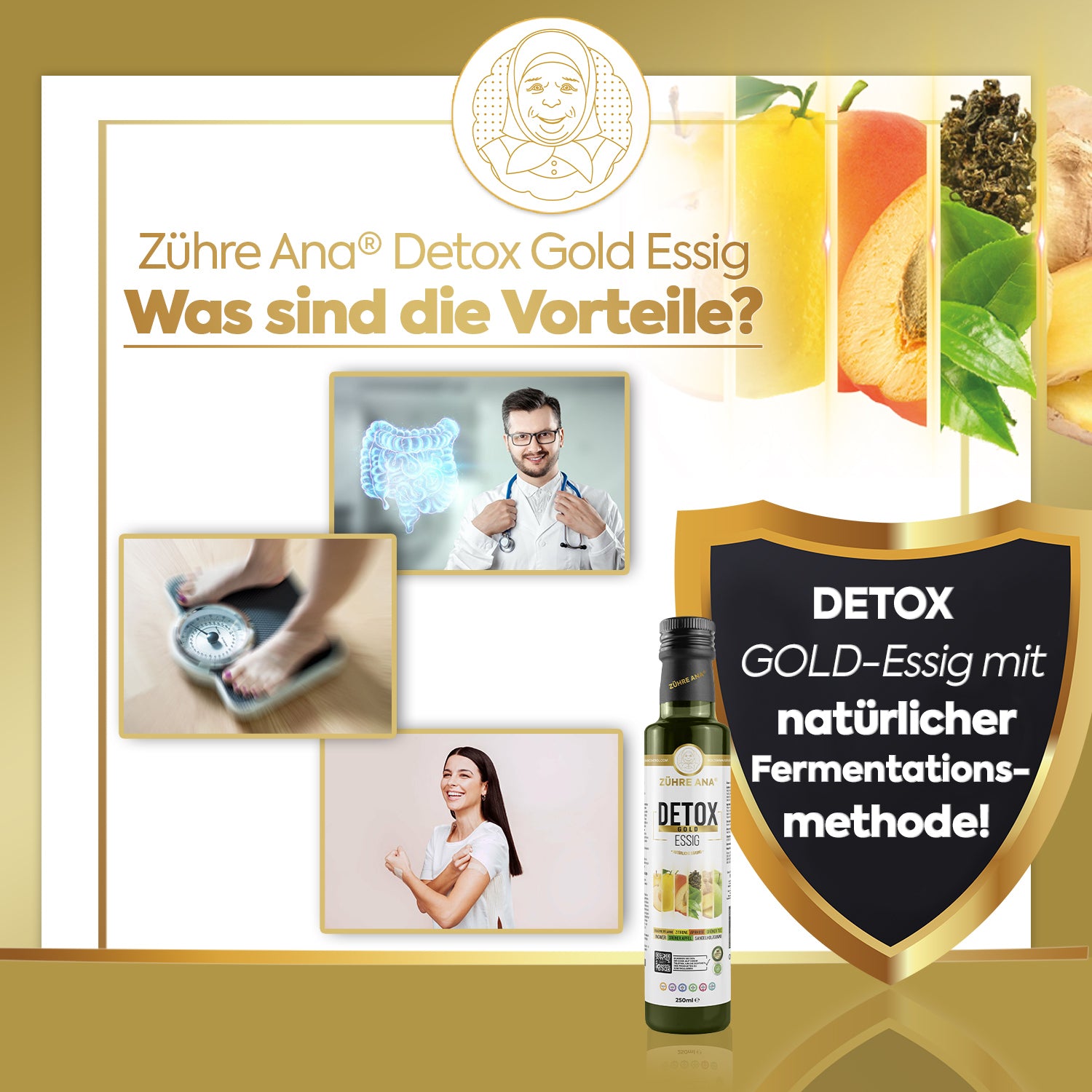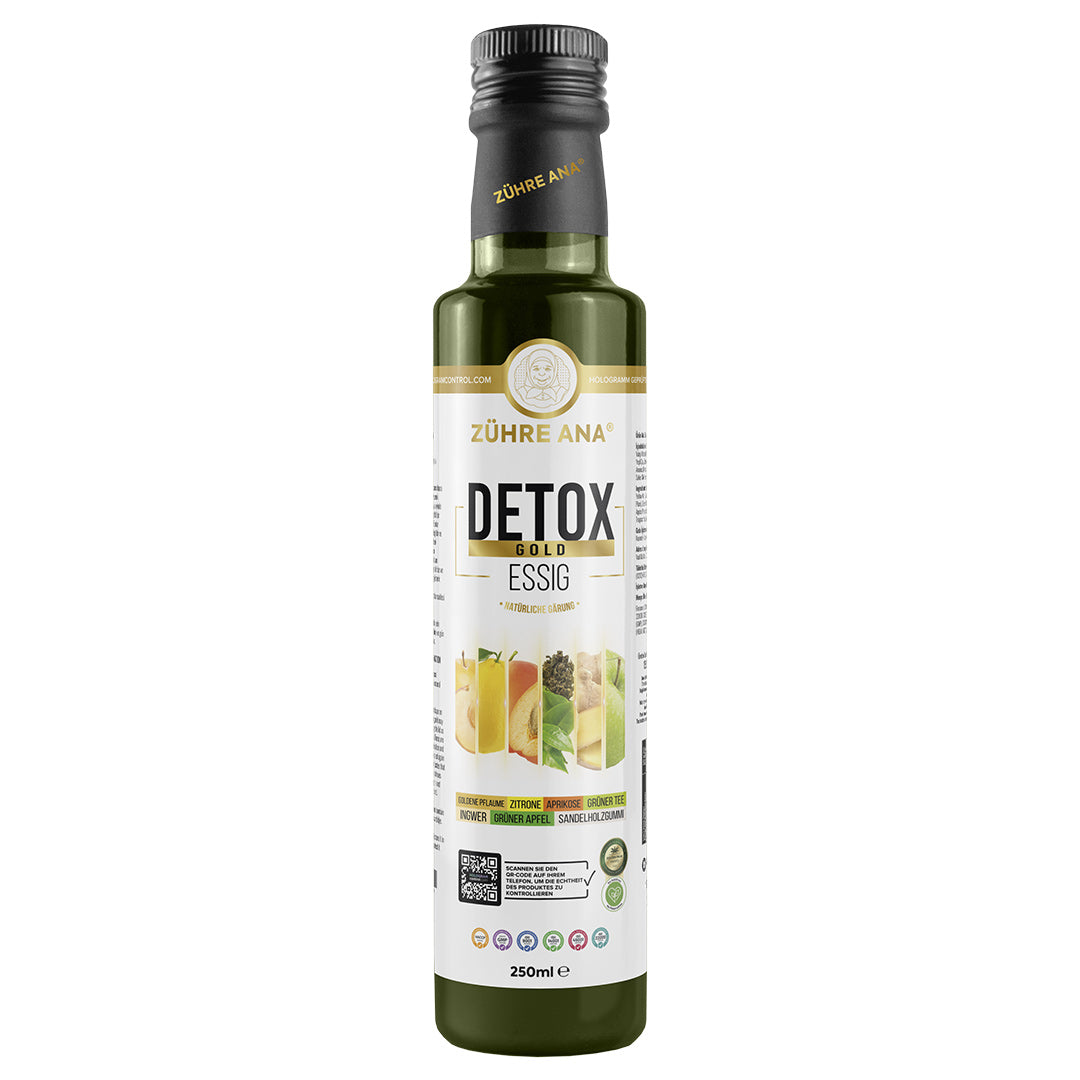 Zühre Ana Detox Golden Vinegar ist ein kraftvoller Entgiftungsessig, der durch natürliche Fermentation gewonnen wird und dabei hilft, den Stoffwechsel zu beschleunigen, den Körper von Giftstoffen zu reinigen und das Immunsystem zu stärken. Dieser Detox-Essig besteht aus einer einzigartigen Mischung aus goldener Pflaume, Zitrone, Aprikose, grünem Tee, Ingwer und grünem Apfel, angereichert mit Sandelholz. Er bietet eine kraftvolle und reichhaltige Formel, die Ödeme und Giftstoffe beseitigt und die Darmfunktionen unterstützt. Dieser Essig, der keine Zusatz- oder Konservierungsstoffe enthält, hilft nicht nur beim Abnehmen, indem er den Stoffwechsel beschleunigt, sondern trägt auch zur Kollagenbildung bei. Beschleunigt den Stoffwechsel, entfernt Ödeme und Giftstoffe – 250 ml, vegan!