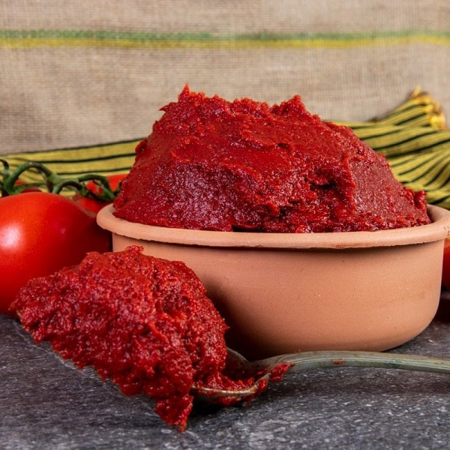 Ev yapımı Antep domates salçası sağlıklı şişelerde satışa sunulmuştur.